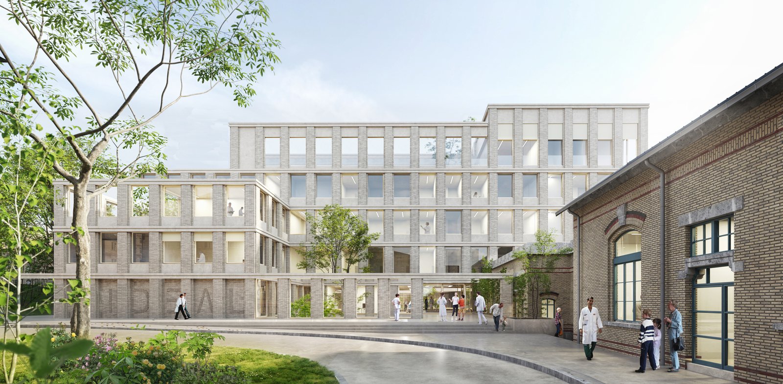 LAURÉAT Voici le projet de l’agence retenu pour la construction de l’hôpital Universitaire réunissant des unités d’hospitalisation, des hôpitaux de jour, des bureaux de consultations et un centre de recherche avec son amphithéâtre à Paris XII