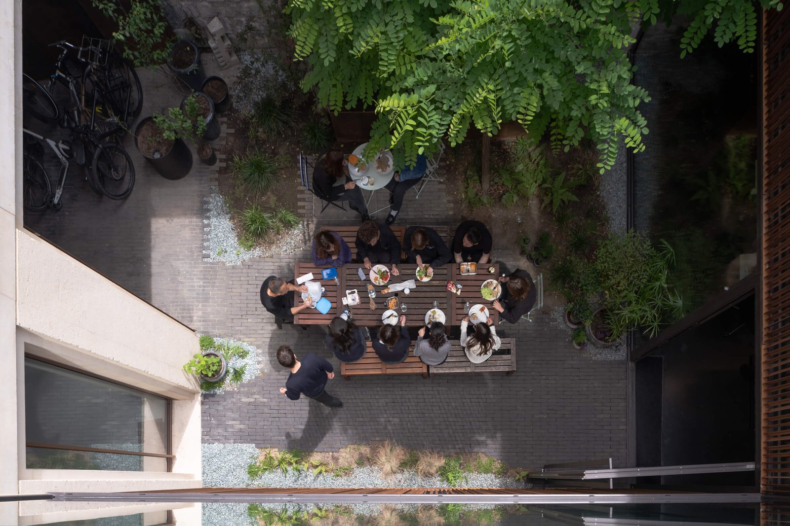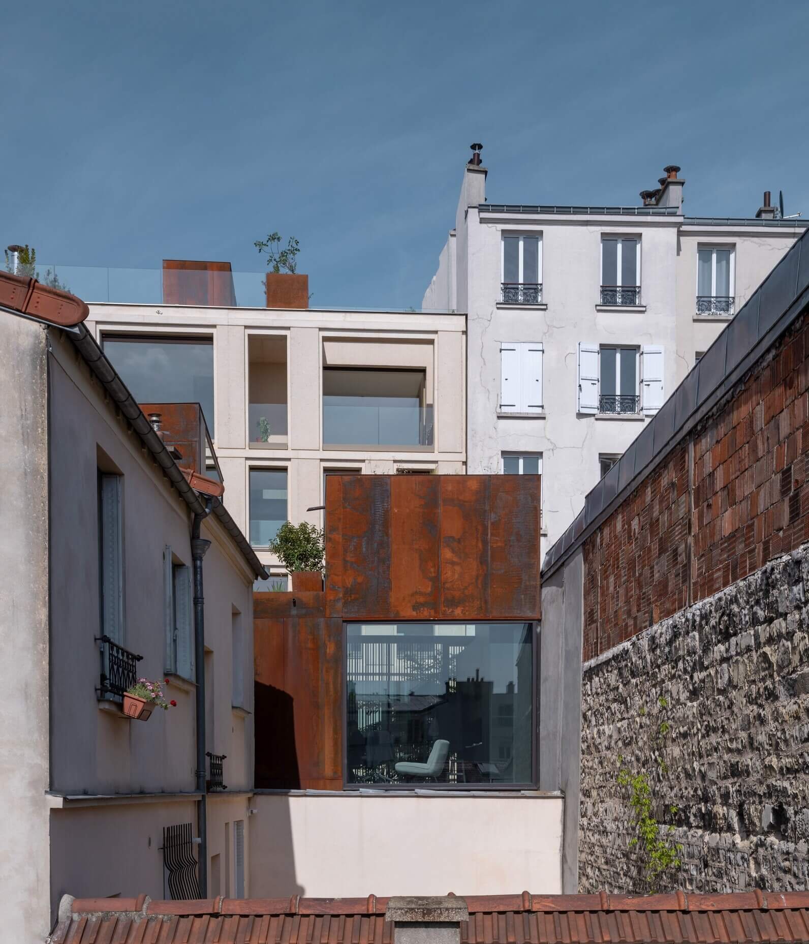 On parle souvent de « faire la ville sur la ville ». Ici, c’est au sens littéral : dans un tissu urbain composite, marqué par l’héritage artisanal, les maladresses du siècle passé, et la résilience de la vie bellevilloise, le projet fabrique une épaisseur nouvelle ni pastiche, ni rupture. Une insertion organique de transition. Il redonne souffle à un îlot entièrement construit d’un hangar monofonctionnel, sans lumière ni jardin. Déconstruire pour mieux faire, en gardant les traces de la mémoire des lieux ; de ce qui a vieilli et de ce qui fabrique un contexte.
