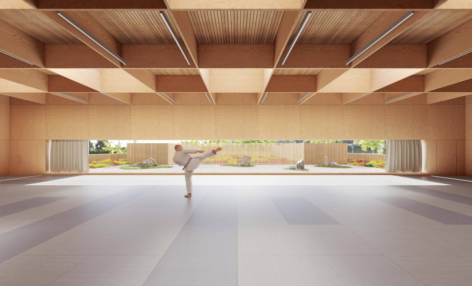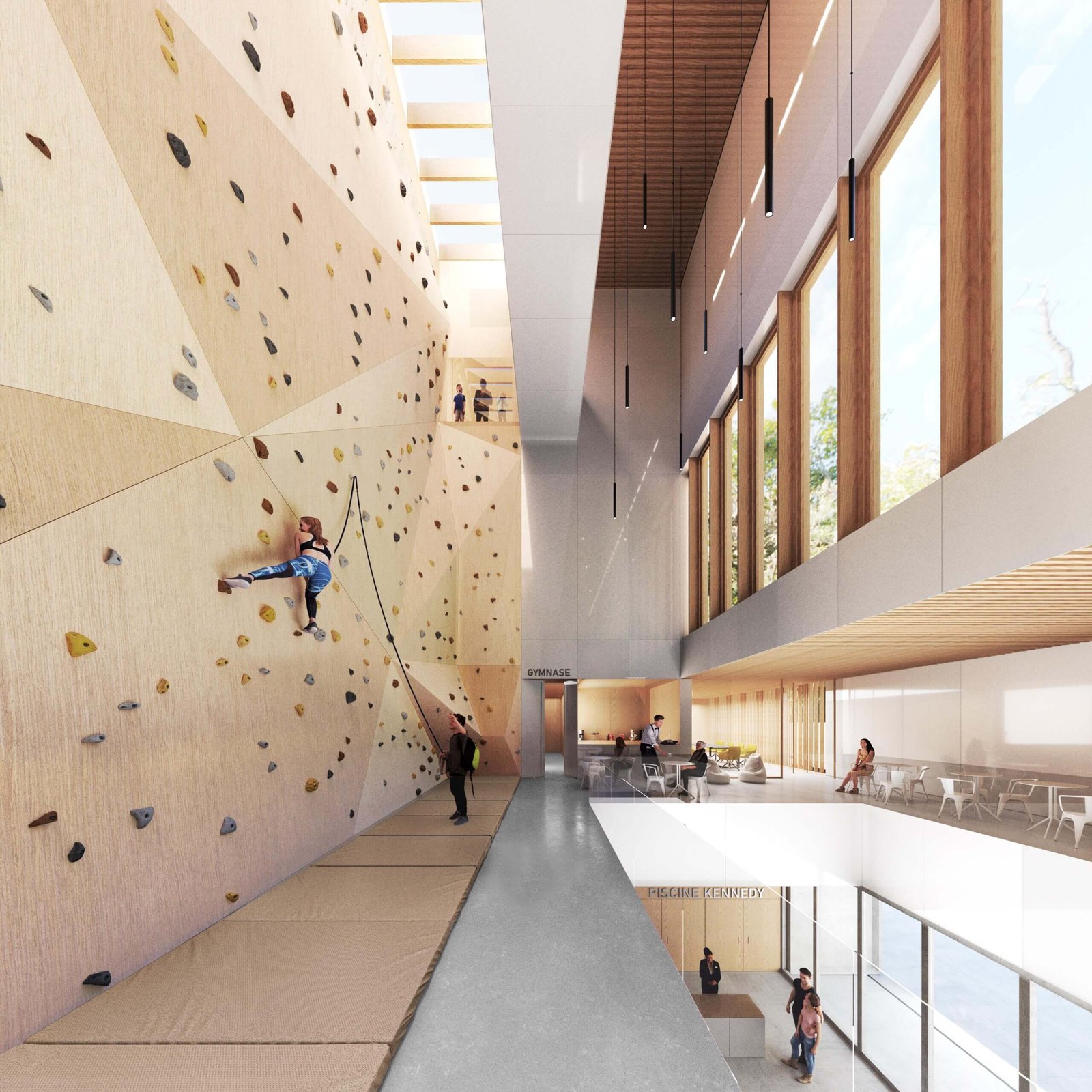 programme Un centre sportif avec une piscine de type C, une salle d’évolution avec mur d’escalade, et une salle dojo.