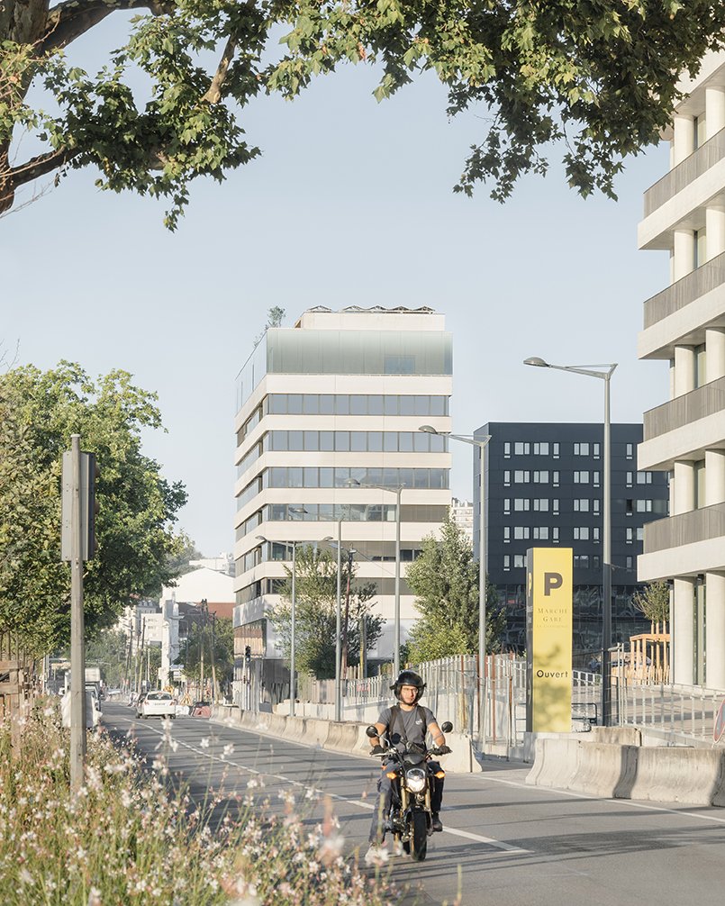 « lm » est un bâtiment qui, par son travail sobre et rigoureux, répond parfaitement aux enjeux développés par l’équipe Herzog et de Meuron et l’atelier Ruelle sur la ZAC Lyon Confluence 2.