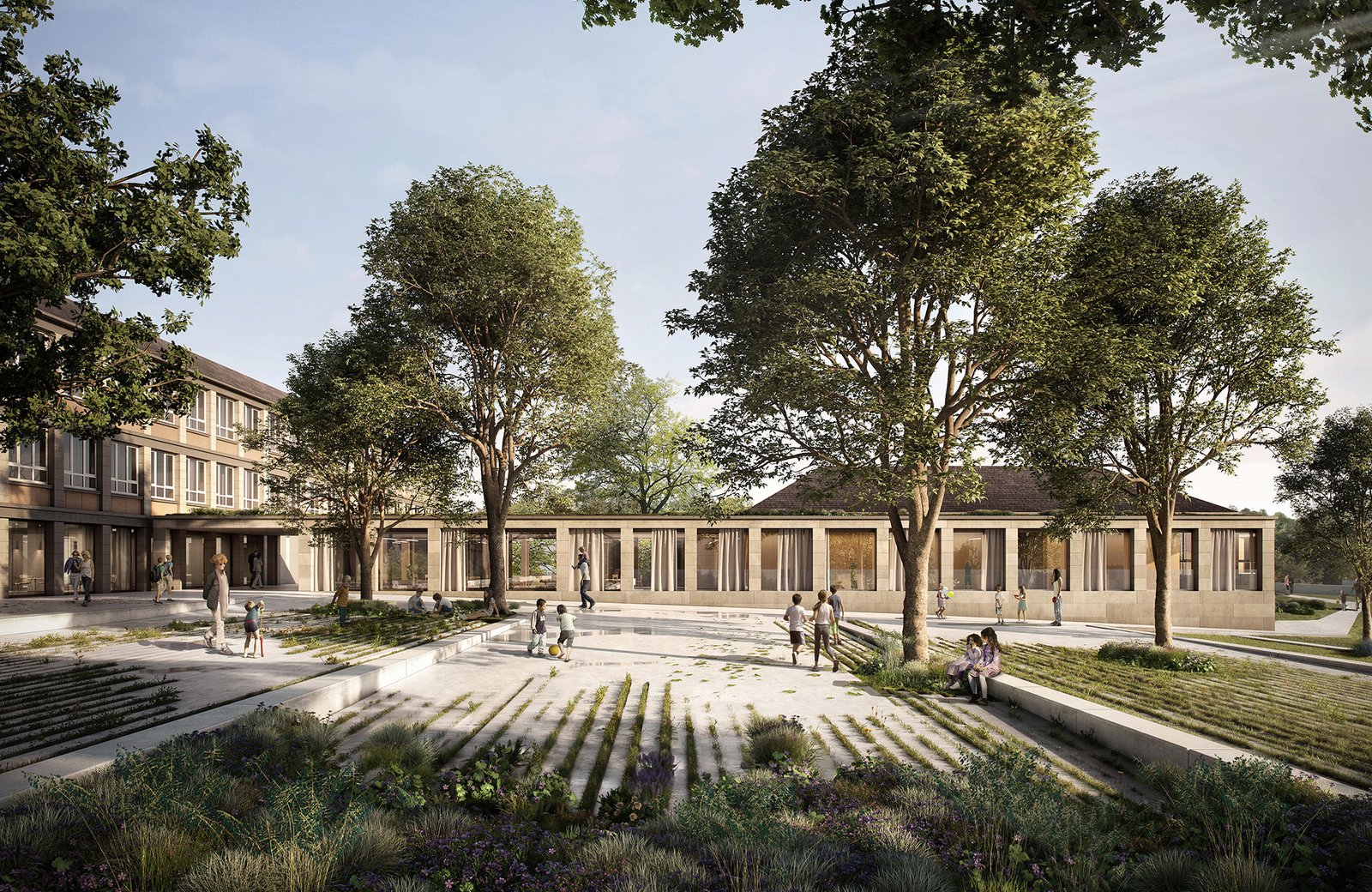 Le projet se base sur ce « déjà là » : La pierre, la trame et la transparence. Le bâtiment existant de 1957-1960 a déjà fait l’objet de deux séries d’extensions. Le nouveau projet d’extensions est pensé en poursuivant la logique du bâtiment d’origine et afin de permettre à nouveau dans le temps de renouveler une fois encore le processus.