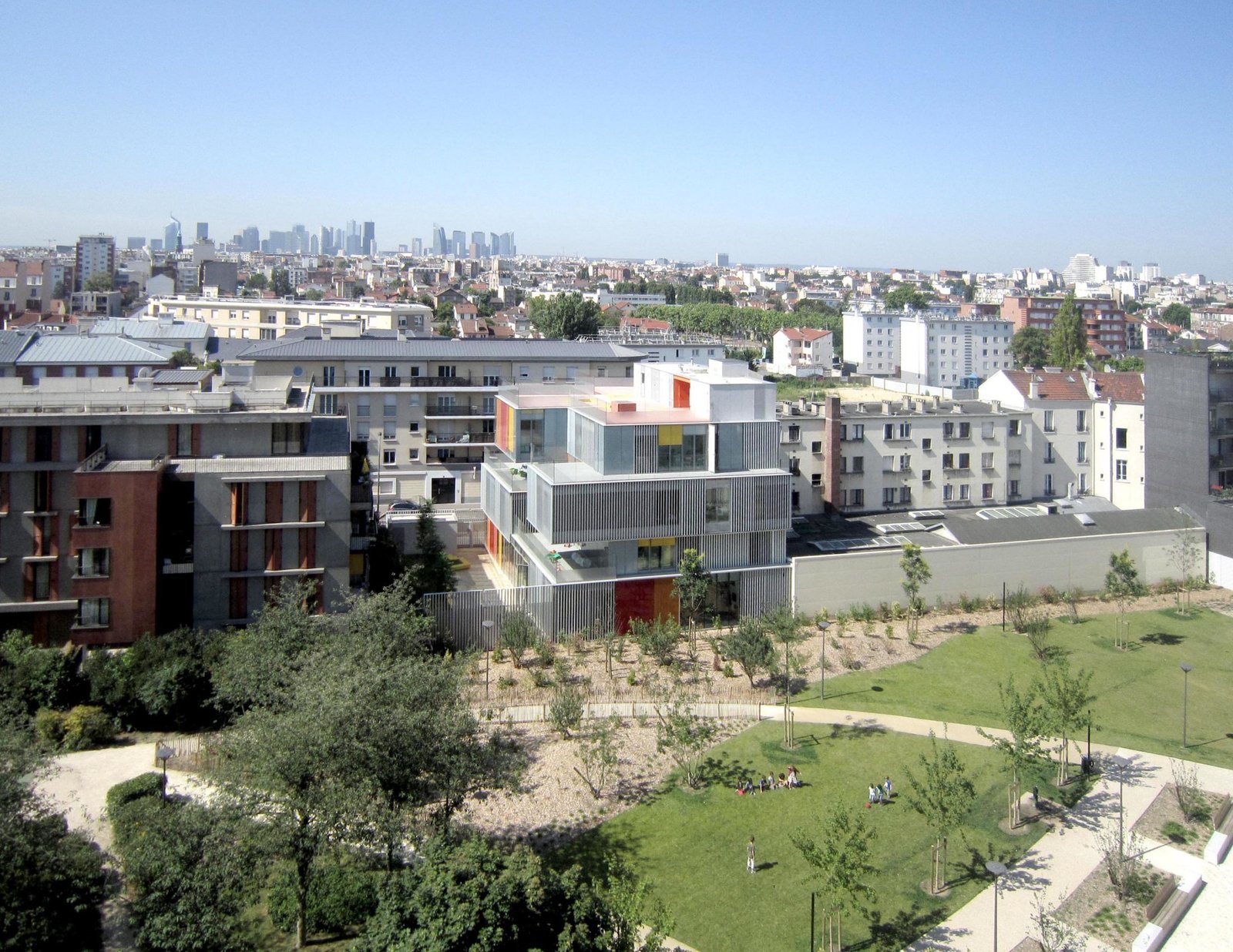 La « grande toiture-terrasse » au dernier niveau est un lieu de rencontre et de jeu entre les différentes tranches d’âges.