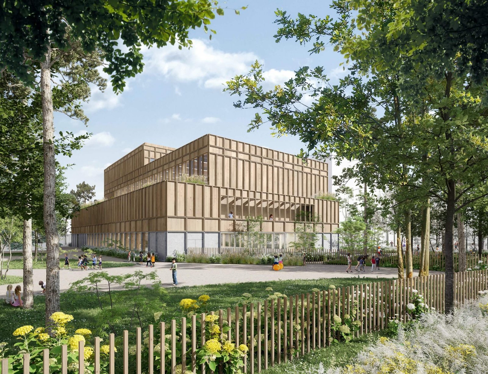 Le gabarit réduit sur la cour du groupe scolaire (toiture à 8.3 m environ au lieu de 13m et 15.5m au programme) permettra un meilleur ensoleillement de cette dernière tout au long de l’année. Il permettra aussi un rapport d’échelle agréable avec l’école.