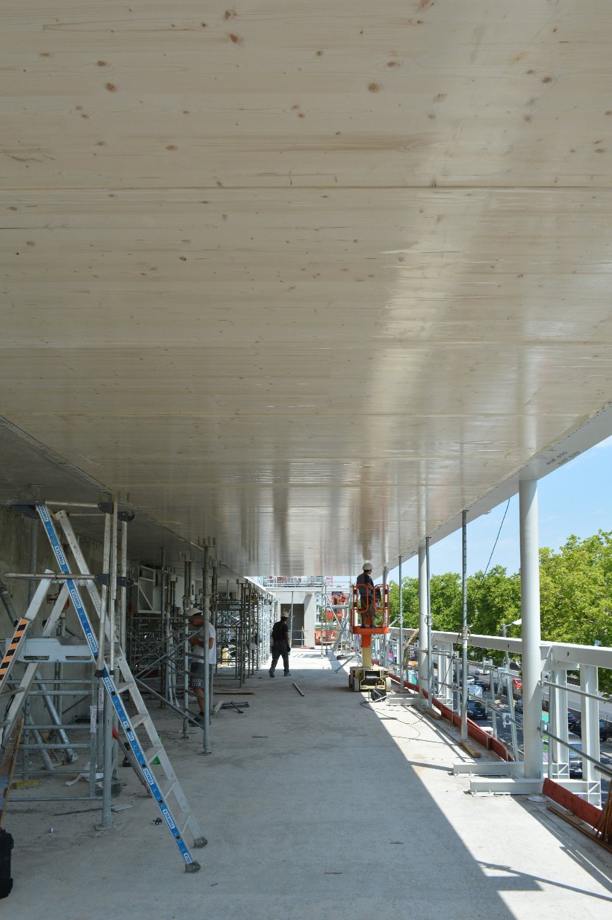 La richesse de ses espaces se dévoile au fur et à mesure qu’on le parcourt. Des évènements lumineux, qu’ils soient naturels ou artificiels, caractérisent chaque espace, dessinent des lieux forts, intimes et généreux sans rendre le bâtiment ostentatoire mais en lui donnant une présence plus immuable, voir immatérielle. Ils révèlent un travail d’acuponcture et mettent en avant des espaces intimes et contenus, intérieurs & extérieurs. Sa prouesse structurelle maîtrisée en fait un bâtiment hôte capable de s’adapter. Elle lui permet aussi d’échanger et de communiquer à l’extérieur avec le grand public par la totale transparence du rez-de-chaussée. En parallèle, les étages offrent des plateaux de bureaux libres, ultra flexibles, panoramiques, aux ambiances feutrées … ils sont mis en relation par des vides intérieurs en double hauteur ou des terrasses partagées.