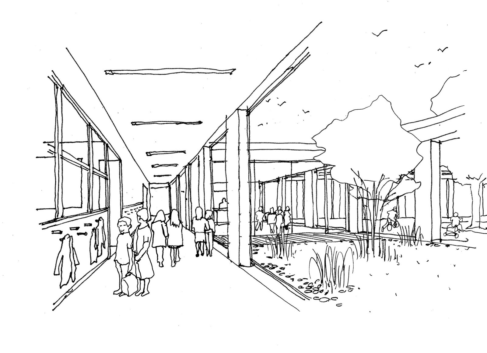 Le site du groupe scolaire Princesse du Vésinet se présente avec une qualité architecturale claire et radicale : deux bâtiments linéaires, parallèles et cohérents entre eux en termes d’organisation (classes orientées à sud et distribution au nord).
