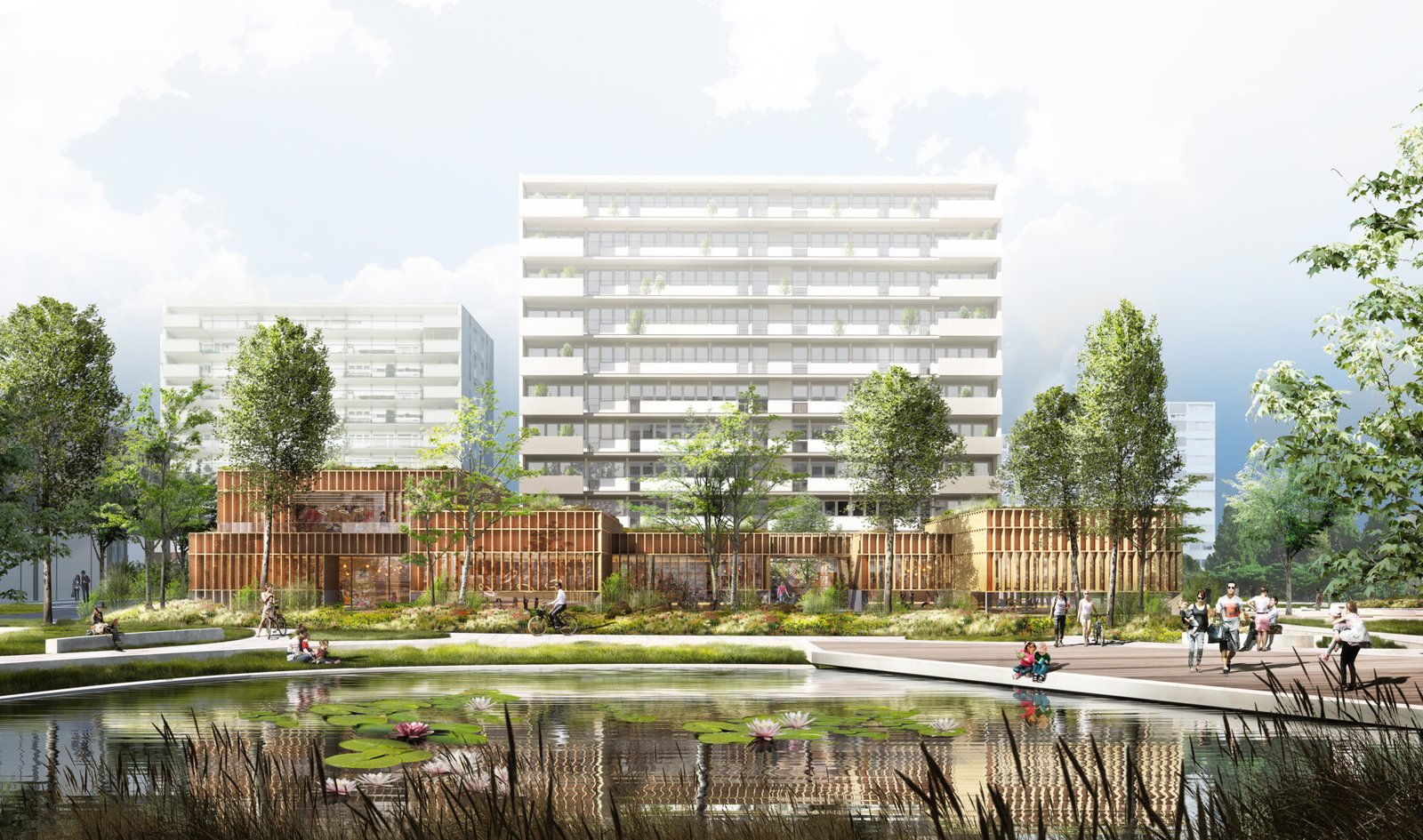 Outre ses qualités environnementales et esthétiques, le bois a été choisi afin de s’inscrire dans la démarche urbaine générale sur l’ensemble du quartier, créant un aspect noble et qualitatif que nous avons souhaité poursuivre. Le bâtiment affiche une image élégante, saine et écologique, ancrée dans les problématiques du 21e siècle.